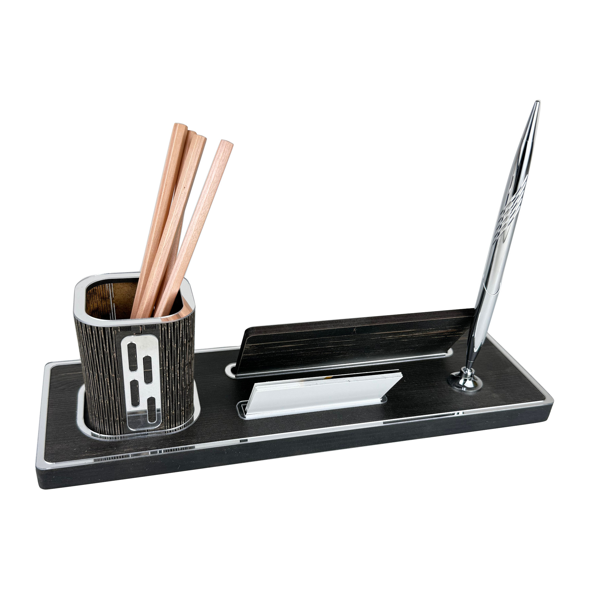 Mdf katmanlar sağlam bir yapı oluşturur. Ürün uzun süre formunu korur. Ayna pleksi figürler ışığı yansıtır ve masalık daha canlı görünür. Bu özellik modeli sadece bir masa düzenleyici olmaktan çıkarır. Aynı zamanda dekoratif bir obje hâline getirir. Ofisler, çalışma odaları ve genç odaları için uyumlu bir tasarımdır.